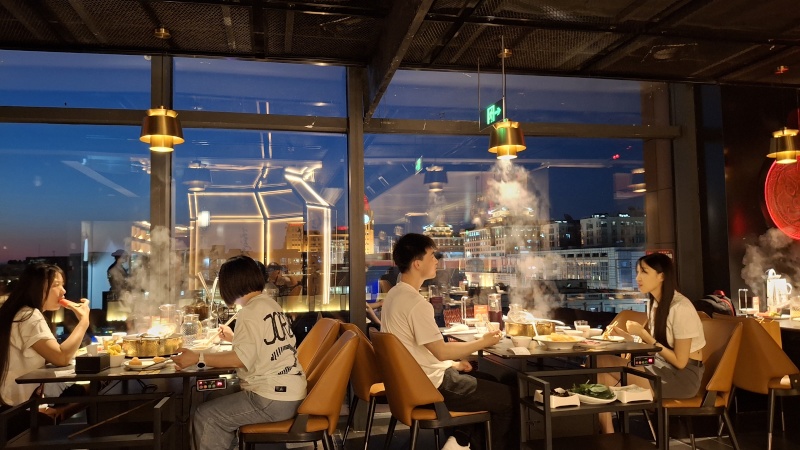 Обед в ресторане (в стиле китайский "самовар", хого).